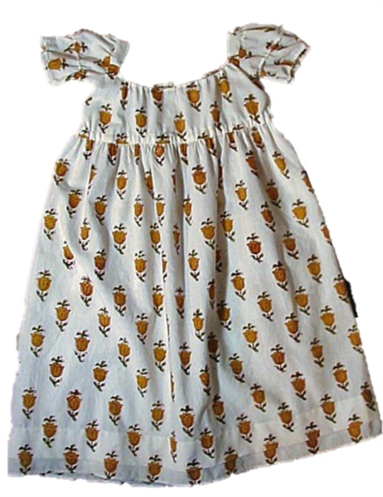 COTTON HAND BLOCK PRINT DRESS WITH PUFF