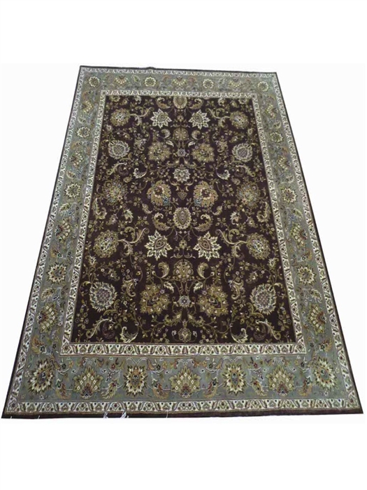 9X9 HAND SPUN WOOL CARPET BROWN & LIGHT BLUE / JAIPUR