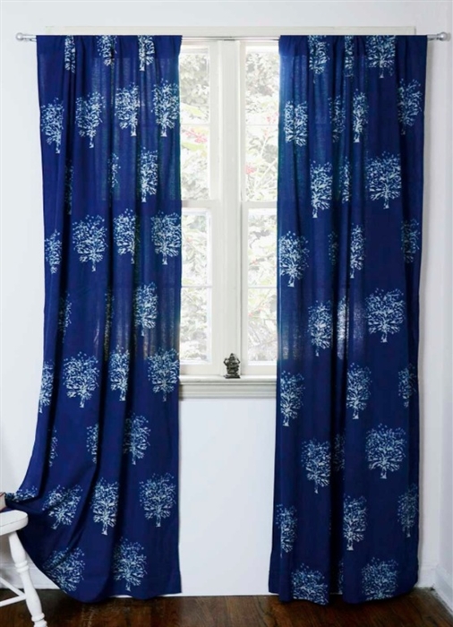 COTTON HAND BLOCK PRINT CURTAIN INDIGO DYED