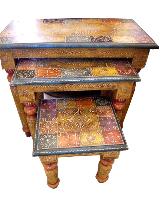 A SET OF THREE TABLES WITH TRADITIONAL HAND PAINTING