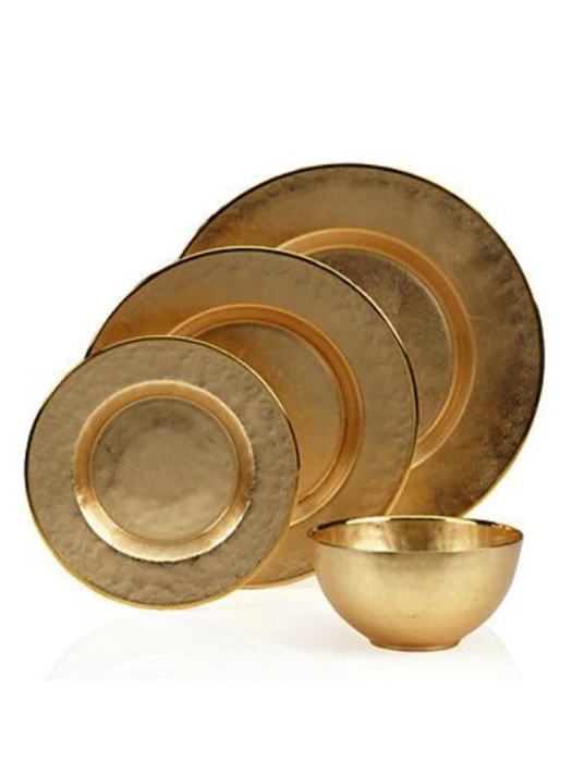 A SET OF HUMMERED METAL DINNER WARE