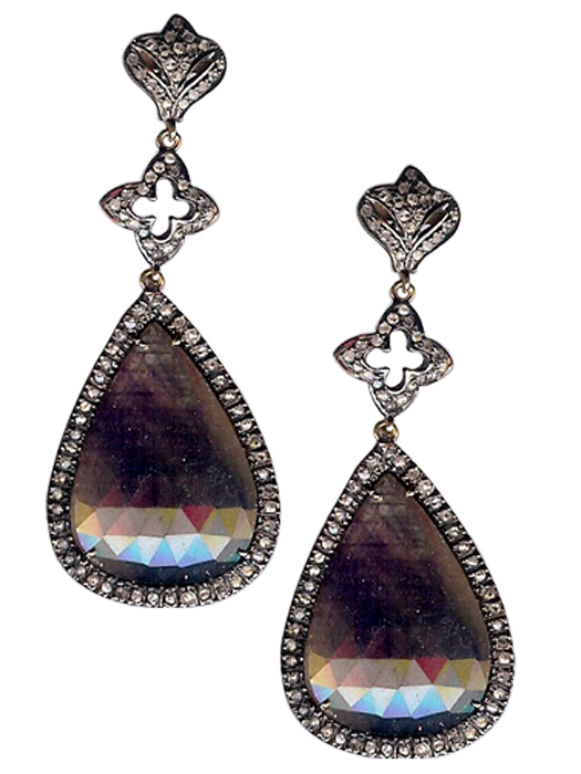 SILVER RHODIUM DROP GARNET / DIAMOND EARRINGS
