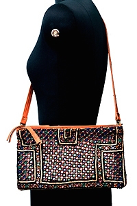 LEATHER VINTAGE FABRIC SHOULDER BAG