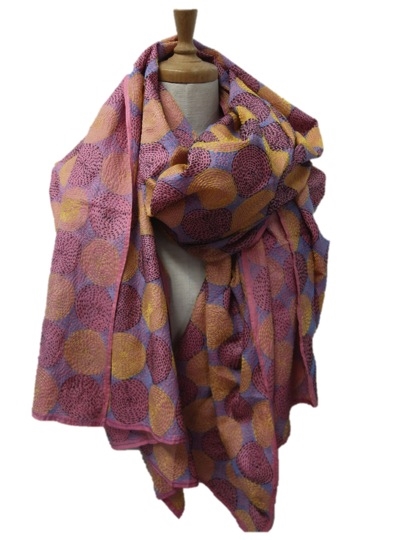 VINTAGE SILK KANTHA ROUND STITCH STOLE