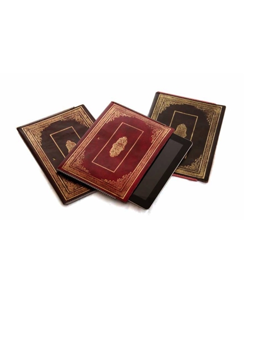 LEATHER I PAD SLEEVE WITH GOLD EMBOSSED PRINT