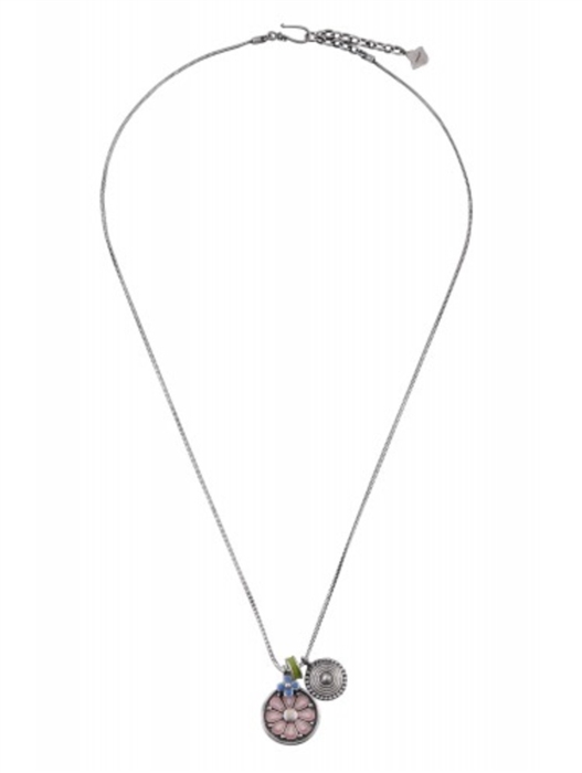 SILVER PINK ENAMEL COIN CHARM PENDANT