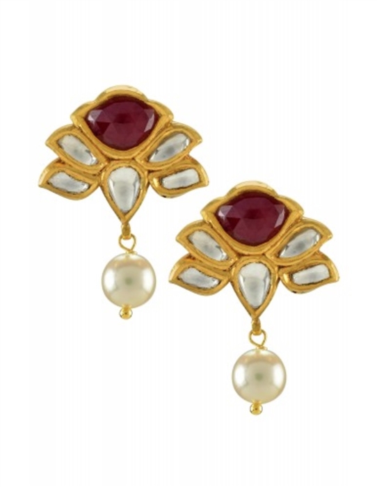 22K & 18K GOLD LOTUS PEARL DIAMOND AND RUBY EARRINGS