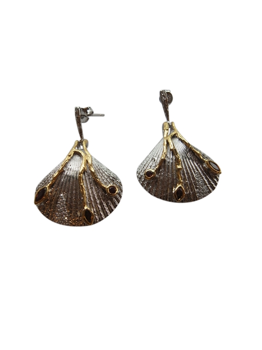 SILVER GOLD PLATED SHELL STYLE EARRINGS WITH GARNET