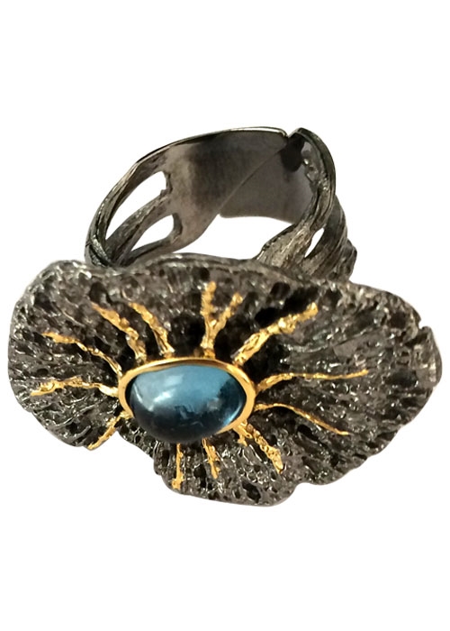 SILVER RHODIUM BLUE TOPAZ RING