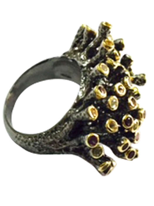 SILVER RHODIUM GARNET / CITRINE / PERIDOT RING
