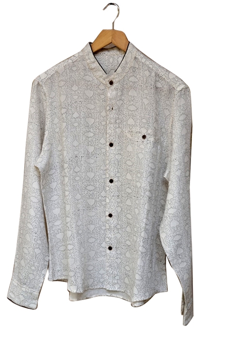 COTTON HAND BLOCK PRINT SHIRT LONG SLEEVE STAND COLLAR
