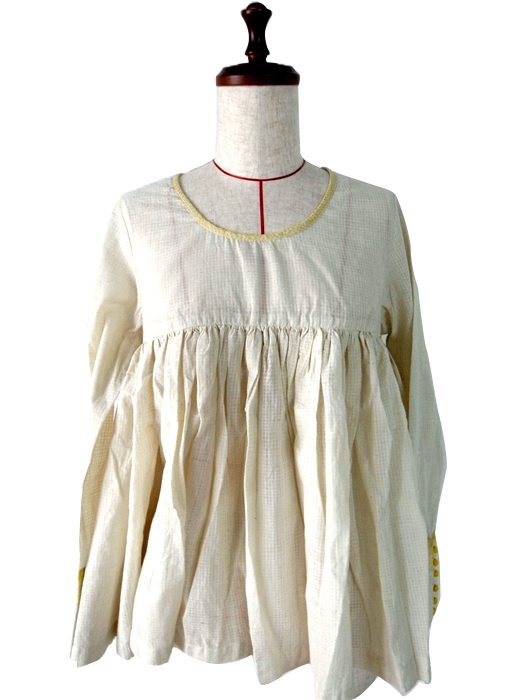 HAND YARN HAND WOVEN KHADI COTTON TOP WITH GATHER AND STITCH