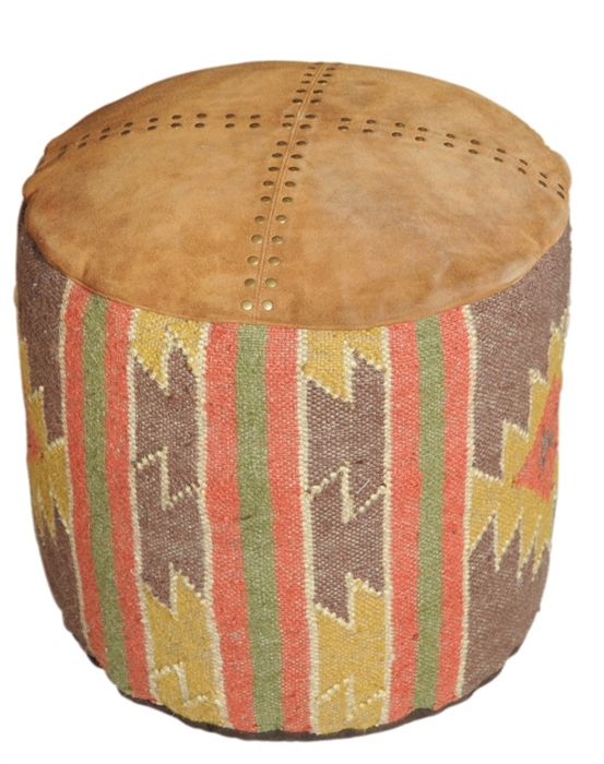 SUEDE LEATHER DHURRIE ROUND POUF