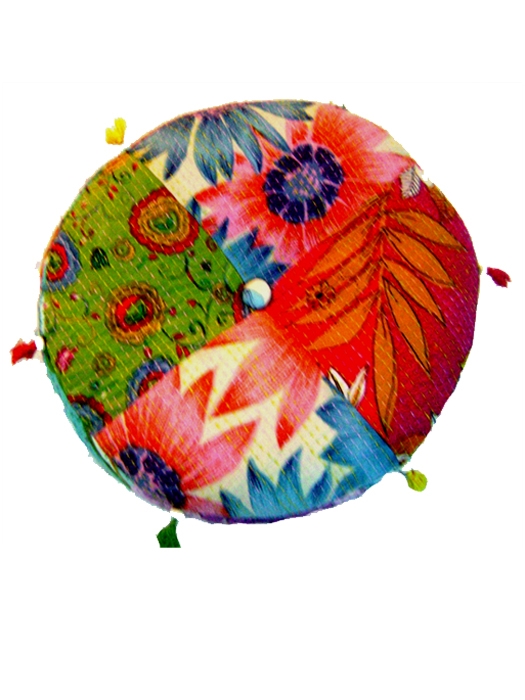COTTON KANTHA STITCH PATCHWORK ROUND CUSHION