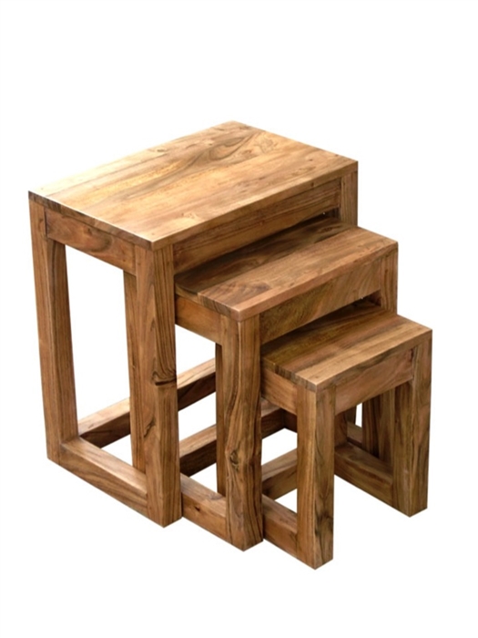 WOOD A SET OF THREE STOOLS
