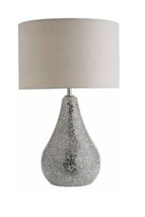 ENGRAVED GLASS TABLE LAMP WITH FABRIC SHADE