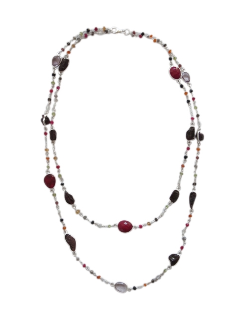 SILVER RUBY / GARNET / PERIDOT / AMETHYST / CITRINE LONG NECKLACE