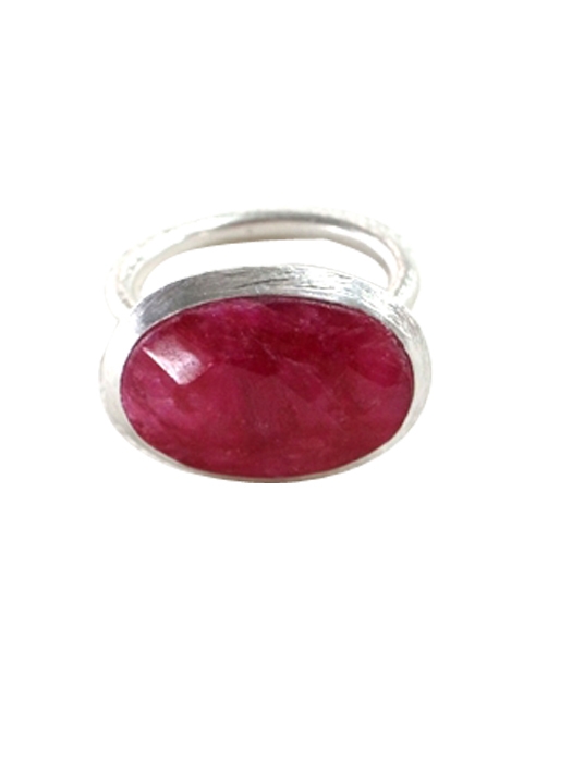 SILVER MAT FINISH OVAL RUBY RING