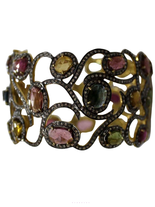 SILVER RHODIUM TOURMALINE / DIAMOND BANGLE