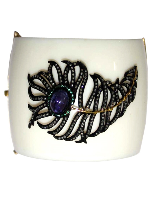 SILVER RHODIUM DIAMOND / SAPPHIRE PEACOCK FEATHER BANGLE