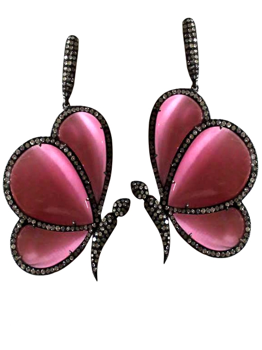 SILVER RHODIUM BUTTERFLY PINK QUARTZ EARRINGS