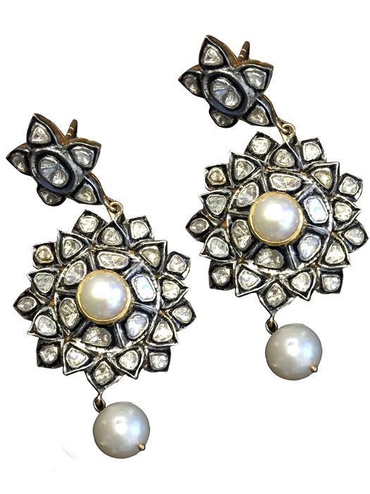 SILVER RHODIUM DIAMOND / PEARL EARRINGS