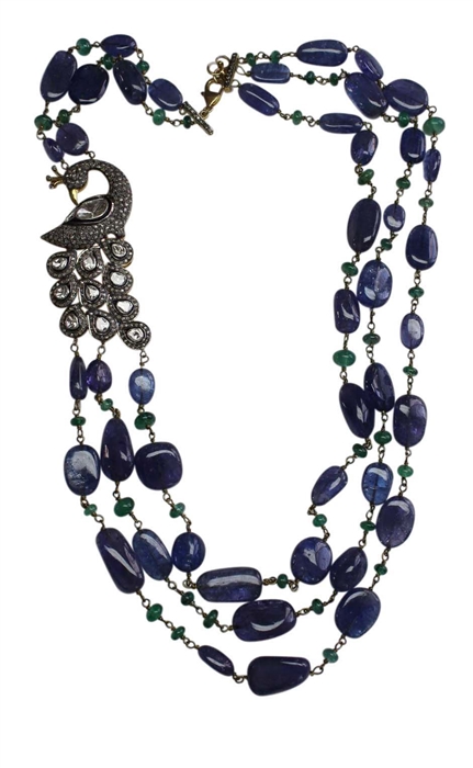 SILVER RHODIUM PEACOCK DIAMOND / SAPPHIRE / EMERALD NECKLACE