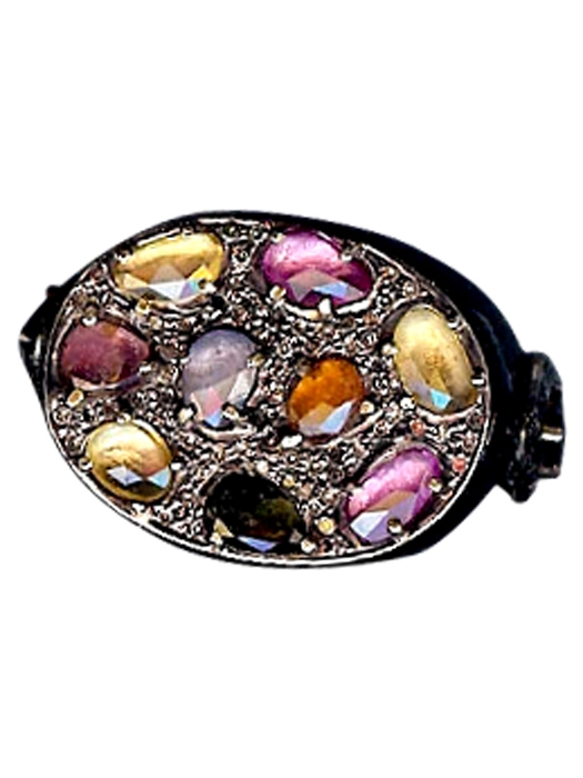 SILVER RHODIUM MULTI COLOR TOURMALINE RING