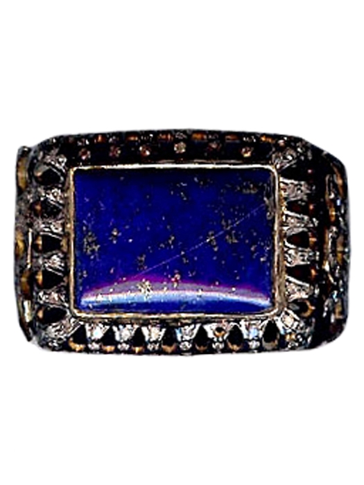 SILVER RHODIUM LAPIS RING